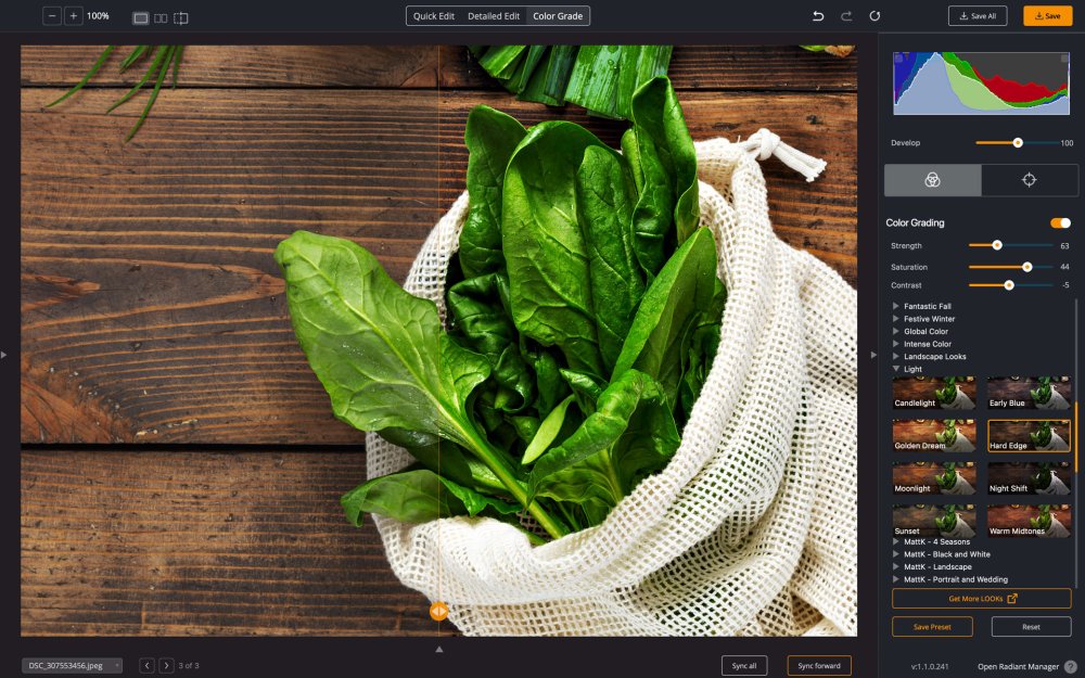 Bevor Sie eine LOOK anwenden, sollten Sie andere Bildfehler korrigieren. Dies kann mit einem Smart Preset, einem normalen Preset oder sogar mit manuellen Bearbeitungen erfolgen. Achten Sie darauf, dass Sie alle Tonwert- oder Farbprobleme in Ihrem Foto korrigieren.