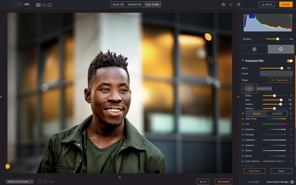 Mit Hilfe der bereits gespeicherten Voreinstellungen lernen Sie schnell, wie Sie das Verlaufsfilter-Werkzeug am besten einsetzen. Außerdem finden Sie bereits ein vorbereitetes Set von Presets für verschiedene Arten von Porträt- und Landschaftsfotos.