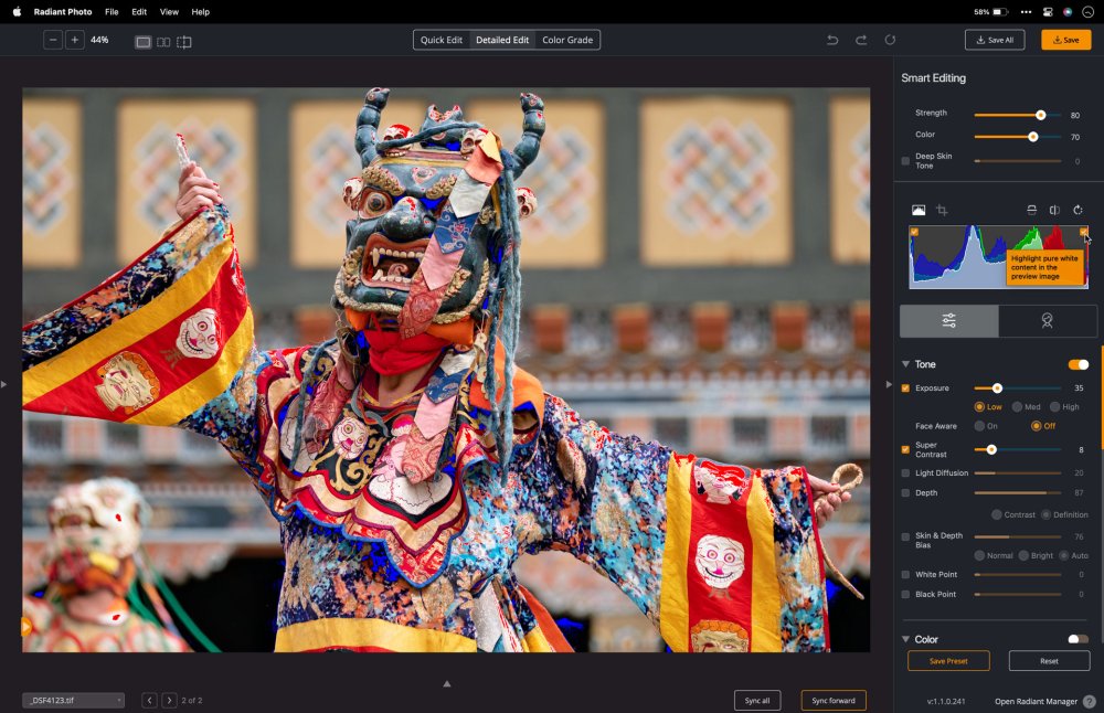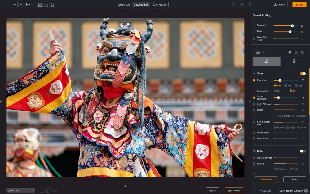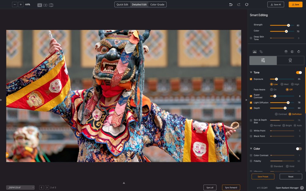 Diese Schieberegler steuern die KI-gesteuerten Bearbeitungswerkzeuge, die Korrekturen pro Pixel vornehmen. Sie sind zwar einfach zu bedienen, aber sehr robust und können viel zur Verbesserung eines Bildes beitragen.