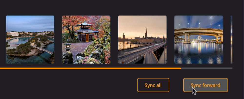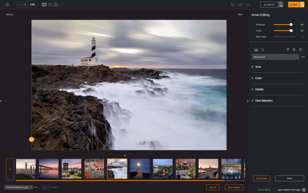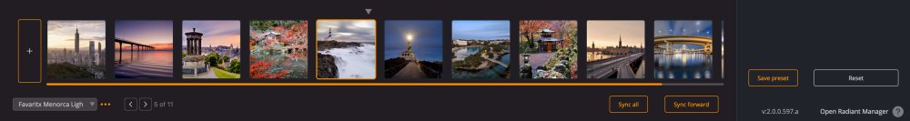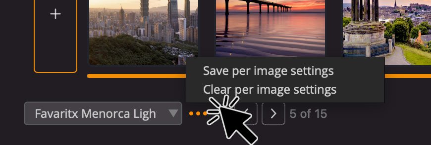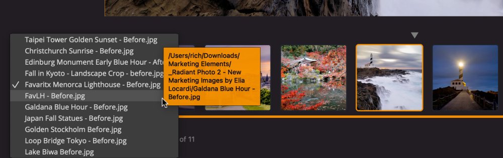 This status bar allows you to quickly switch between several images that are opened at once (only available in the Lightroom Classic plugin and application). The dropdown allows you to select from all open images, and the left & right arrow buttons allow you to proceed quickly to the next photo.