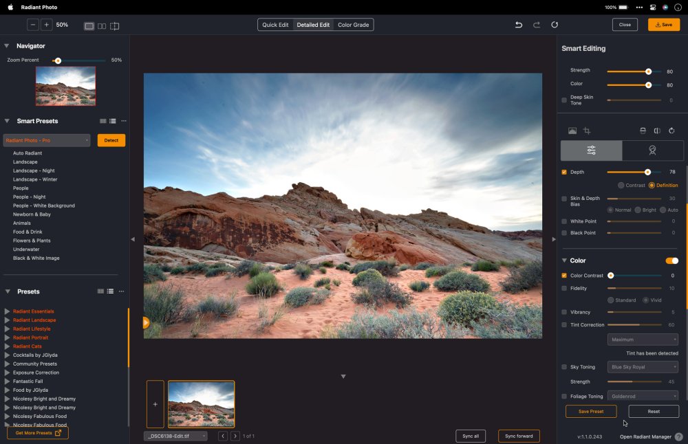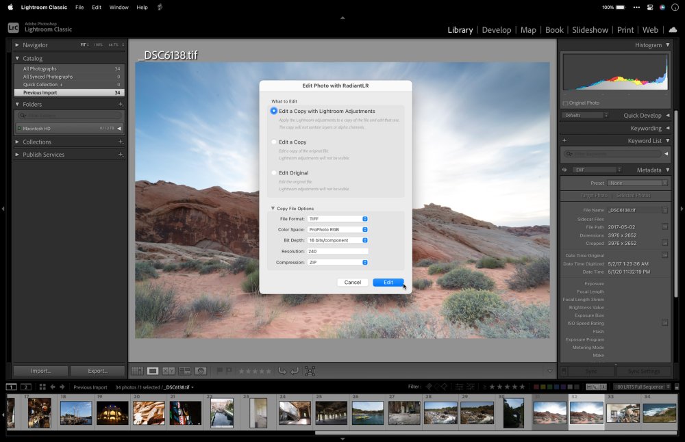 - When ready, click the Edit button to send the image to Radiant Photo 2. Lightroom creates a new high-quality file and preserves your original raw files if present.