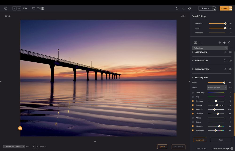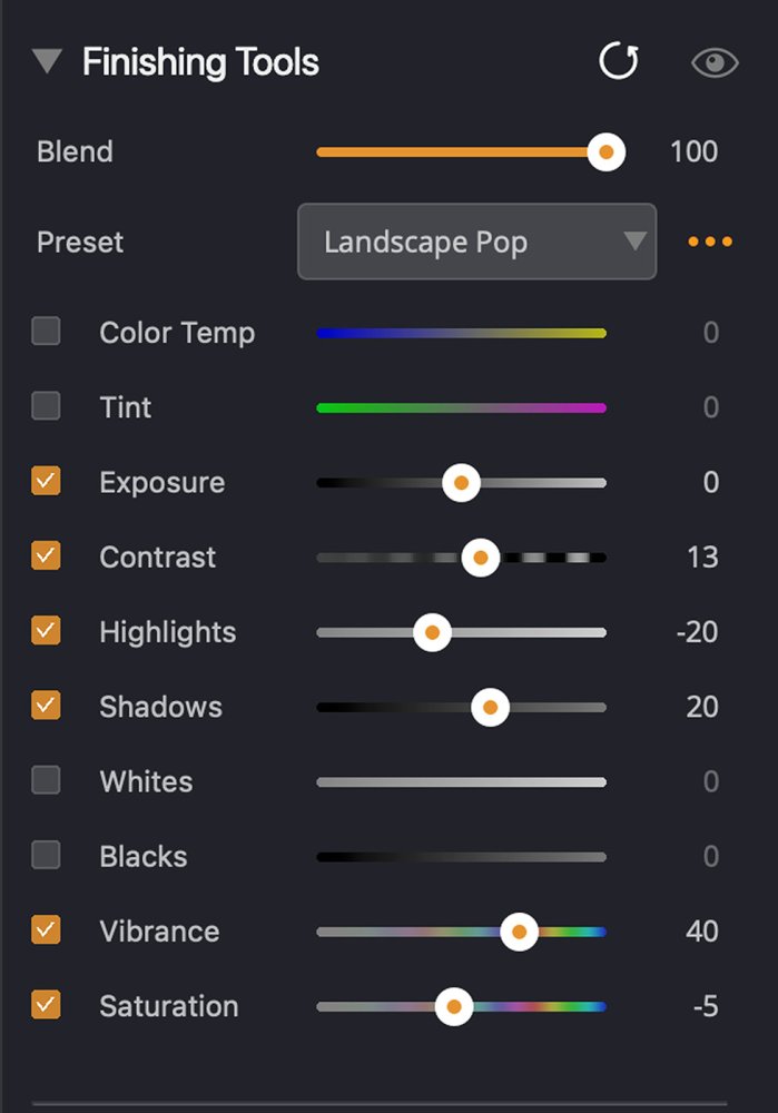 Finishing Tools allow you to add image adjustments at the end of your photo processing. These adjustments are applied after all other corrections are made.