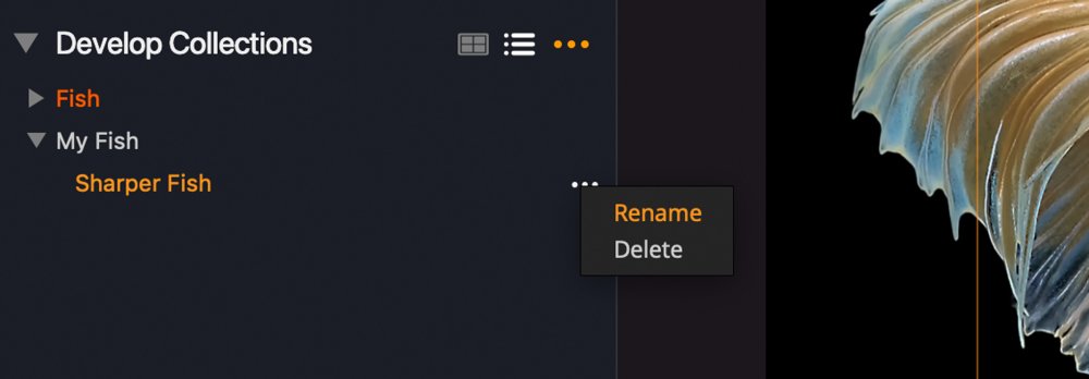 - Choose Delete to remove the custom setting from the active Develop Collection.