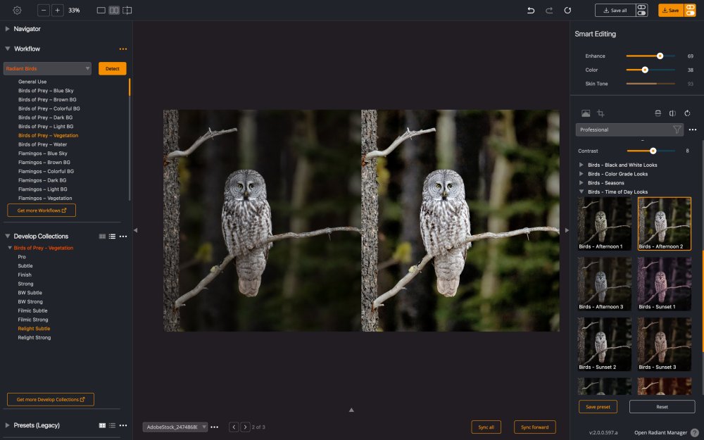 - Fine-tuned Develop Settings | Sharpen, Relight, Film Emulations, Color Grade, Black & White and more