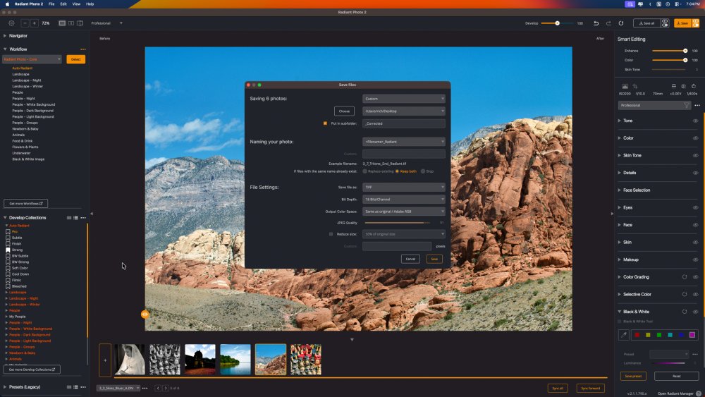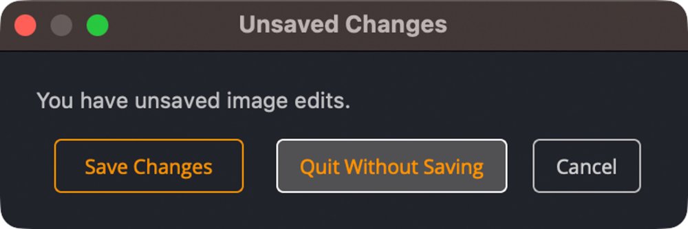 - Quit confirmation: When closing Radiant Photo 2 from the window close button or system menu with files loaded, you’ll see a save/quit dialog so edits aren’t lost.