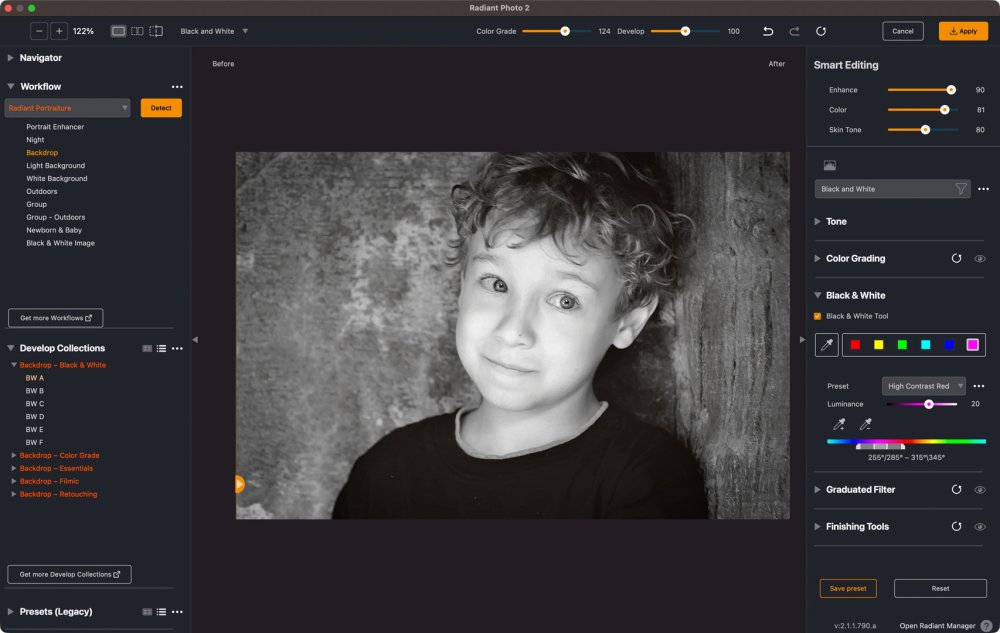 - Apple Photos (macOS) Support: New companion plug-in “Radiant2Photos” is included for Apple Photos users. (See here for more – https://manual.radiantimaginglabs.com/1/en/topic/using-radiant-photo-with-photos-for-macos)
