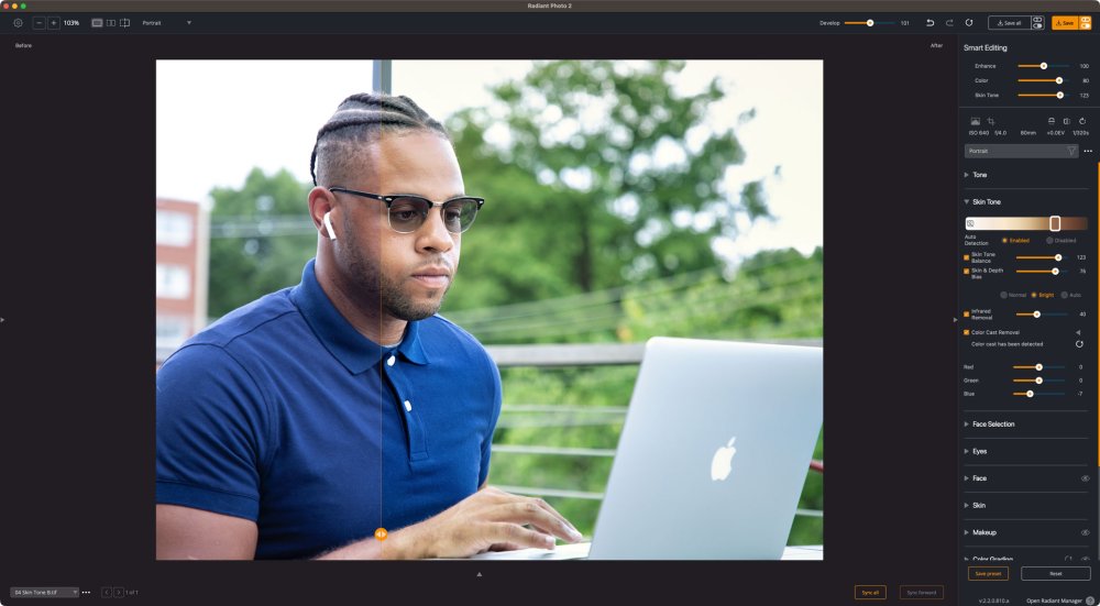 The Skin Tone section is now properly available within the Portrait Workspace, making it easier to refine subject to background and color casts directly where portrait tools are in use.