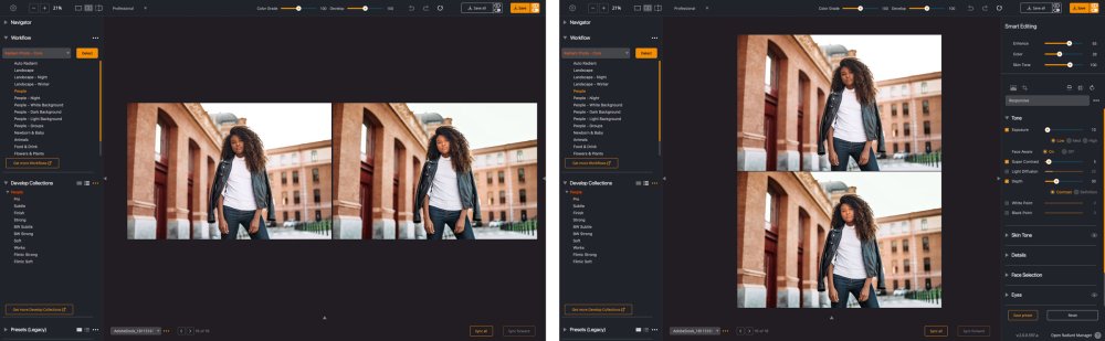 - Develop – Exponentially refine the Tone, Color, and Details tools.